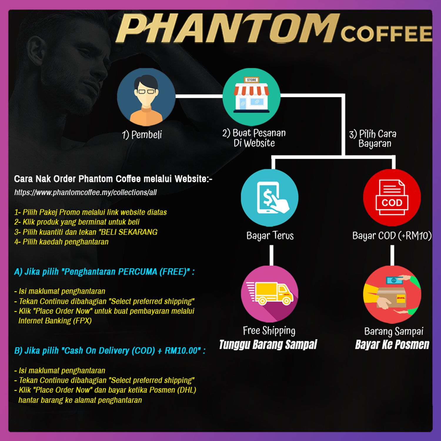 Pembelian boleh dibuat secara pembayaran terus atau Bayar di Posmen ketika Barang Sampai (Cash On Delivery ~ COD).